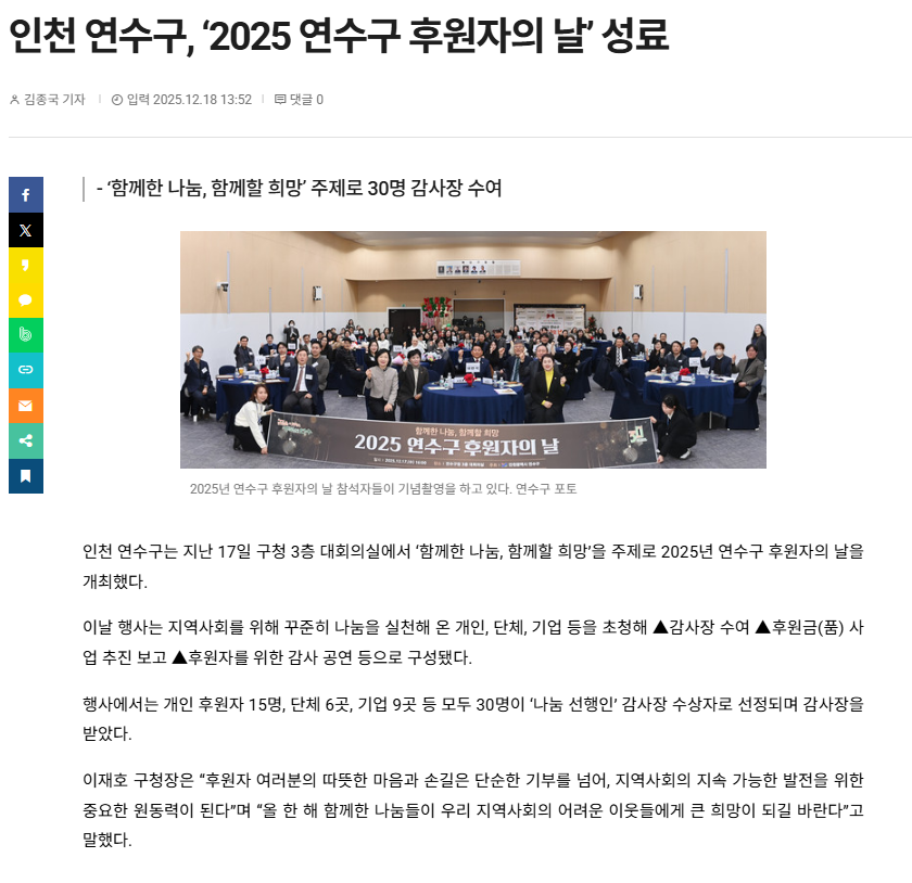 인천 중구 취약계층 아동에 겨울 선물 50세트 전달