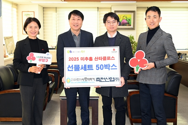 인천광역시 부평구는 19일 구청에서 측천산업주식회사의 후원으로 ‘2025 미추홀 산타클로스 선물 전달식’을 진행했다고 밝혔다. 이번 행사는 사단법인 수와진의 사랑더하기가 주관하는 ‘2025 미추홀 산타클로스’ 사업의 일환이다.